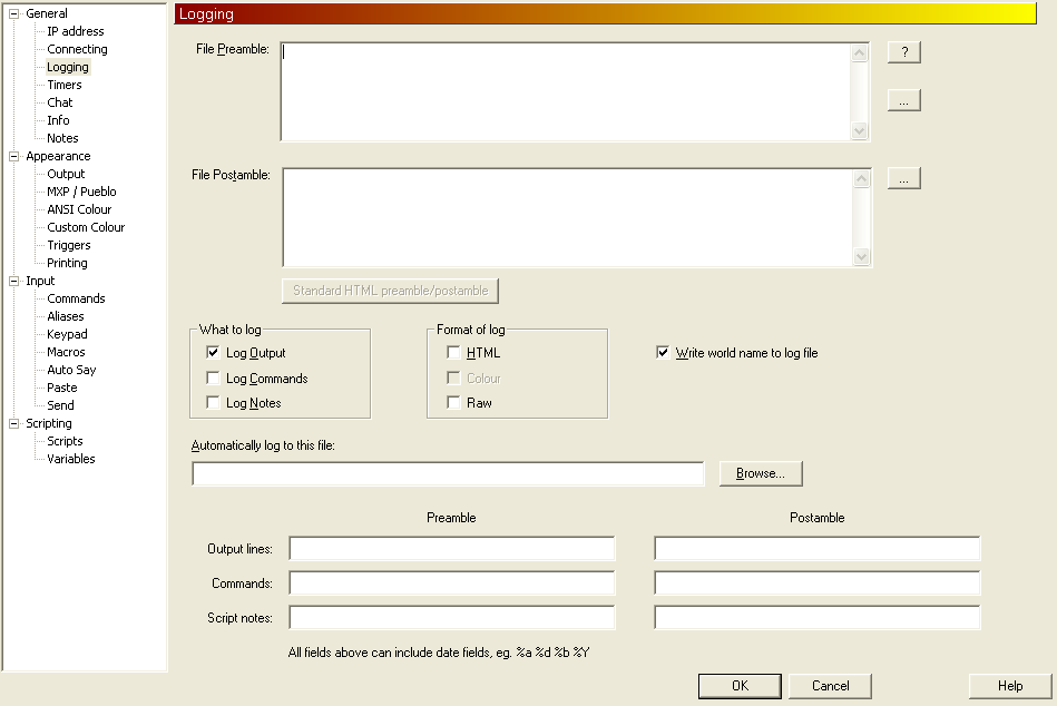 | | I originally wanted to log everything, but found this was hanging my laptop so I have tried to turn it off under global preferences, world settings, etc. I have even removed the path for it to log too and the instructions of what to log, however everytime I reconnect to the world it tries to start logging and now opens an error message that it can't find the folder for the log file to go to. Any suggestions? | | Top |