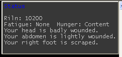I am not very fluent in Lua so I tried a few things with it but could never get it to quite work. The best I had it doing was to list all of the damage section. (that's the part below "Fatigue: Fully Rested Hunger: Well-Fed" and above "(To view your skills, type skills"