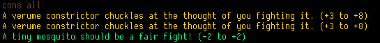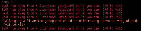 When you type "consider" it simply colours the output in a way which indicates how much the mobs you are in the room with are to be feared.