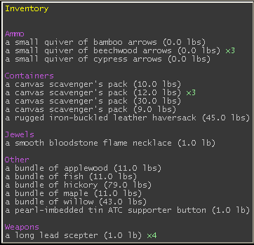 You can get a bit fancier if you like. This amended version breaks your inventory into categories, by matching on keywords in the inventory.