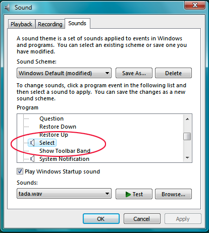 | Message | | What you need to do Twisol is record yourself saying nothing, and attach that sound to the "select" event. <grin> |  | - Nick Gammon