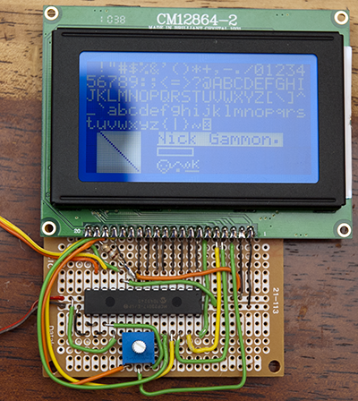 Text LCD displays are all very well, but they suffer from various limitations. For one thing, you don't have a huge amount of screen to play with, you can't do special effects (like inverse) and you can't draw boxes and gauges.