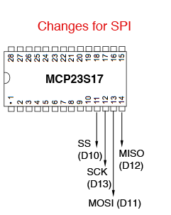 • LCD pin 5 goes to MCP23017 pin 27 (Read/Write)