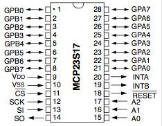The first programming challenge was working out how the I/O expander worked. Basically it is pretty simple. The chip provides two 8-bit ports named A and B. Each bit can individually be programmed as inputs or outputs. Then you basically write to the chip, generally using two bytes: