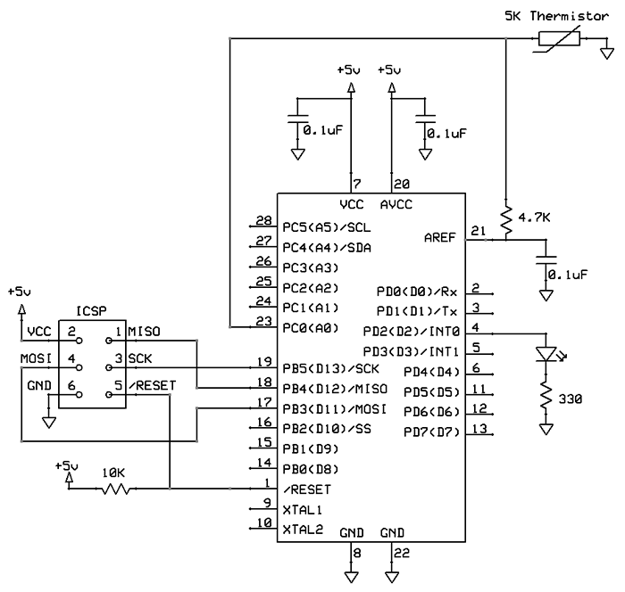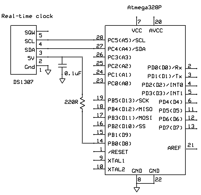 The "bare bones" board I am playing with is from "Evil Mad Science" for around $US 13 for the board, processor chip, a ZIF (zero insertion force) socket, a 6-pin programming header, and a couple of other things: