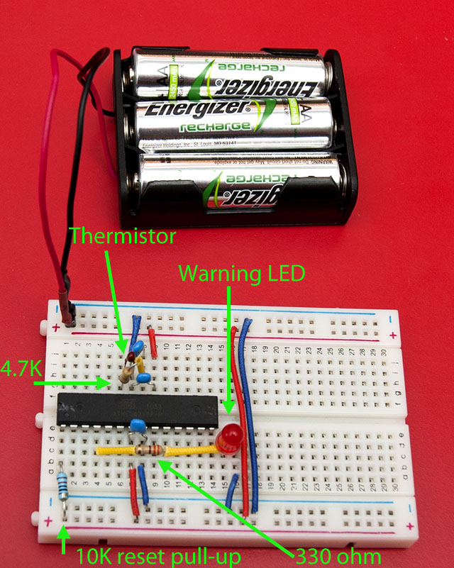 So from now on I'll experiment with the "bare bones" board. However it can still be programmed using the normal Arduino IDE (Integrated Development Environment). In my case I am using the USBtinyISP programming gadget, which you can get from here for around $US 22.