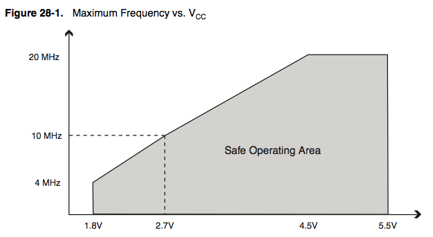 This is, of course, before using any sleep modes. This demonstrates that you can get quite low power consumption, with the processor not asleep, by just playing with the clock prescaler.
