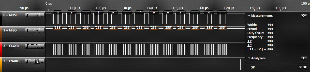 I put a trigger on the SS (Slave Select) pin so that the logic analyser would start analysing from when the sequence started.