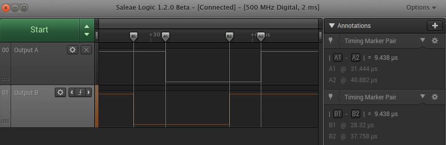 Testing shows that the displayed pulse width is within 100 ns of the actual width (two clock cycles basically) which isn't too bad.